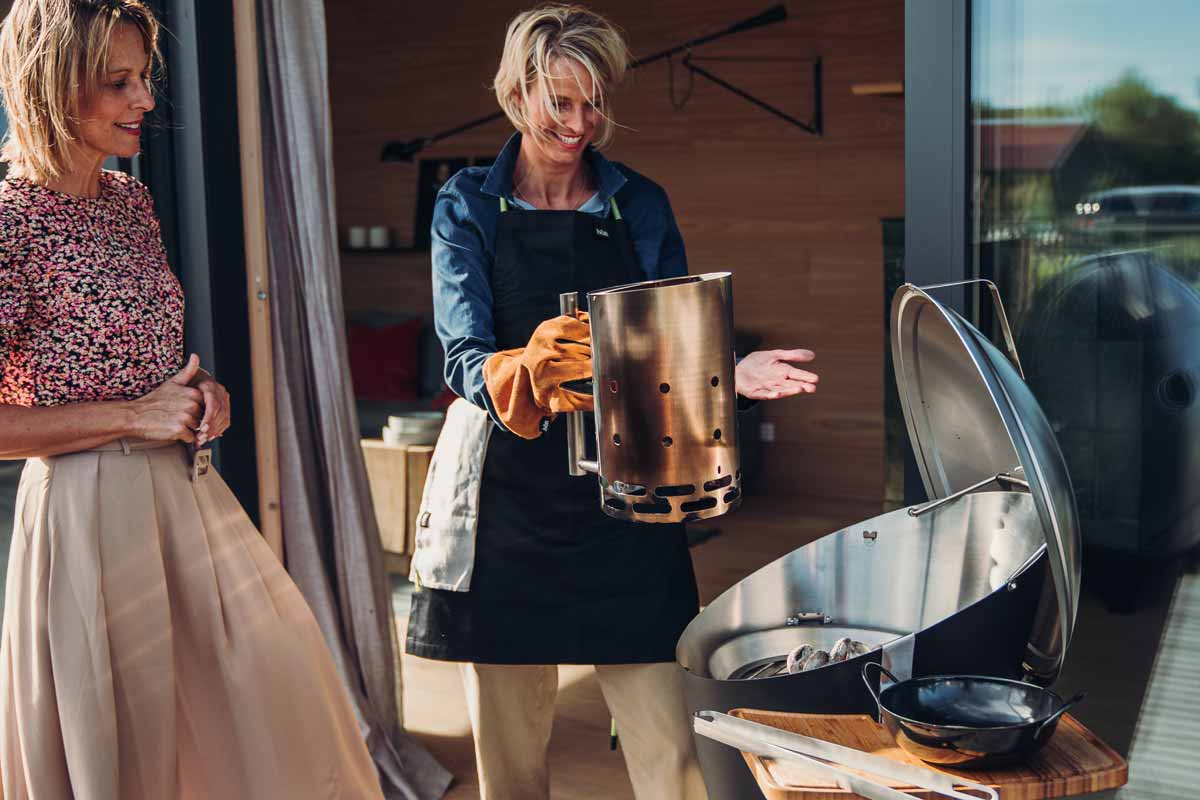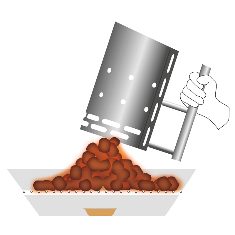 BBQ Starter - Er kann sowohl als klassischer Anzündkamin verwendet werden, als auch nach dem höfats Anzündprinzip. Dabei wird der Anzündkamin nicht umgedreht, sondern einfach nach oben abgezogen. Es entsteht kein Funken- und Ascheflug und ist somit wesentlich sicherer und komfortabler als herkömmliche Anzündkamine.