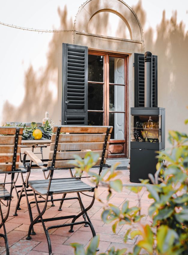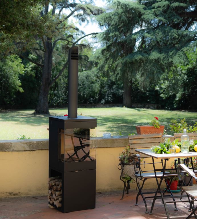 Als willkommener Nebeneffekt sorgt dies wiederum für eine rußfreie Scheibe und einen ungetrübten Blick aufs Feuer. Weitere Pluspunkte des FIRETIME Outdoor Kamins sind der geringere Holzbedarf und der geringere Schadstoffausstoß: Feuererlebnis auf dem Niveau eines guten Innenkaminofens.