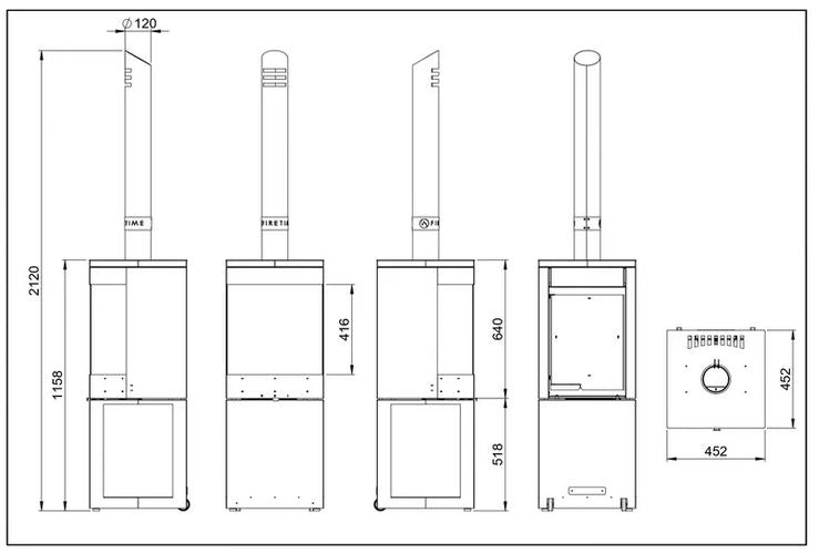 - Gesamthöhe: 212 cm (inklusive Kaminrohr)