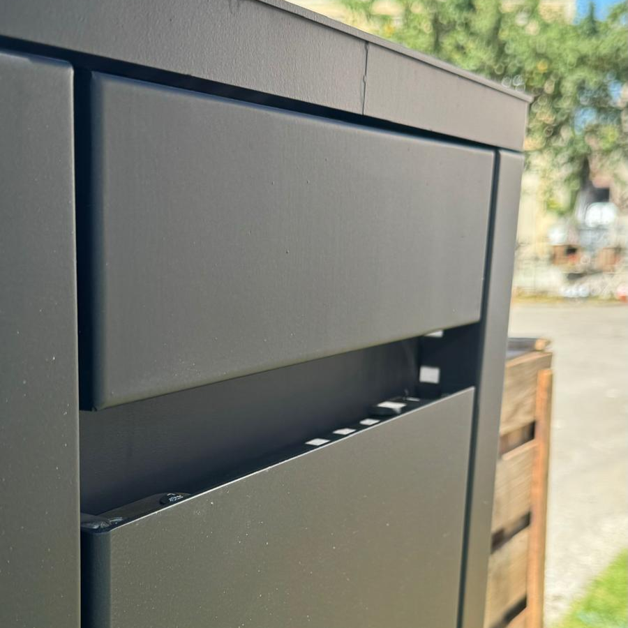 - Korpus: Hitzebeständiger Stahl mit witterungs- und korrosionsbeständiger Beschichtung