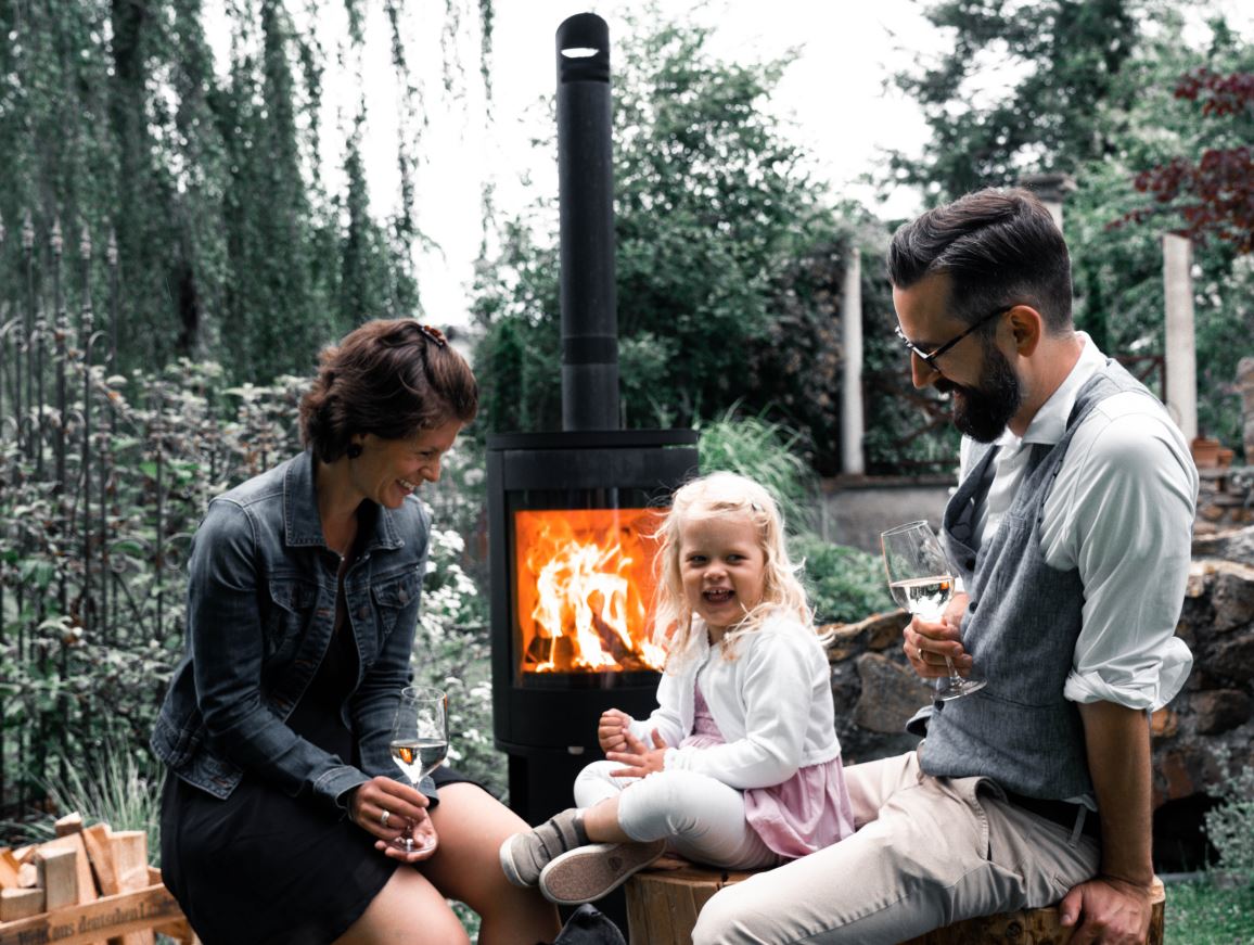 Als willkommener Nebeneffekt sorgt dies wiederum für eine rußfreie Scheibe und einen ungetrübten Blick aufs Feuer. Weitere Pluspunkte des FIRETIME Outdoor Kamins sind der geringere Holzbedarf und der geringere Schadstoffausstoß: Feuererlebnis auf dem Niveau eines guten Innenkaminofens.