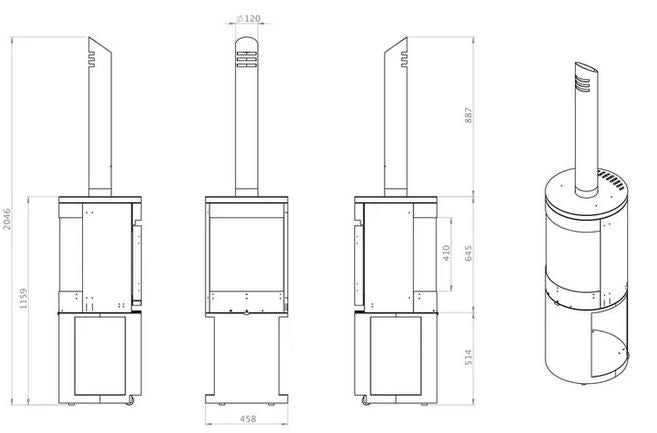 - Gesamthöhe: 212 cm (inklusive Kaminrohr)