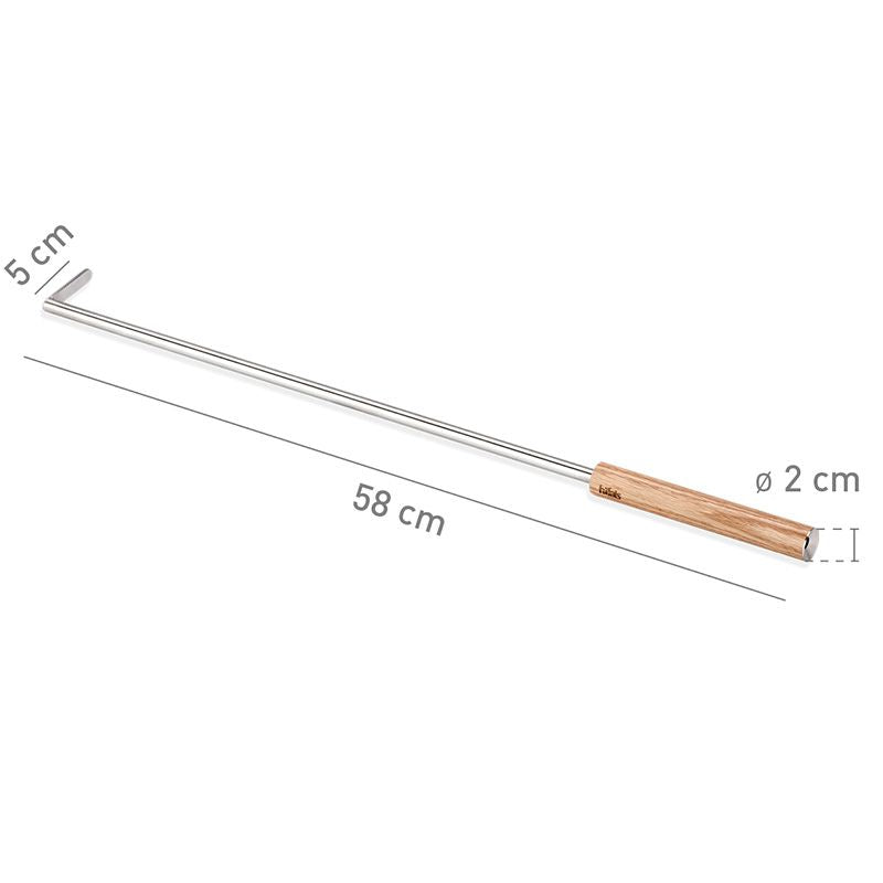 Der Schürhaken wird seiner Aufgabe des Feuerschürens im doppelten Sinne gerecht, denn er lässt Dich über das unscheinbare, integrierte Flammenbläserrohr zusätzlich das Feuer im sicheren Abstand zu den Flammen entfachen.