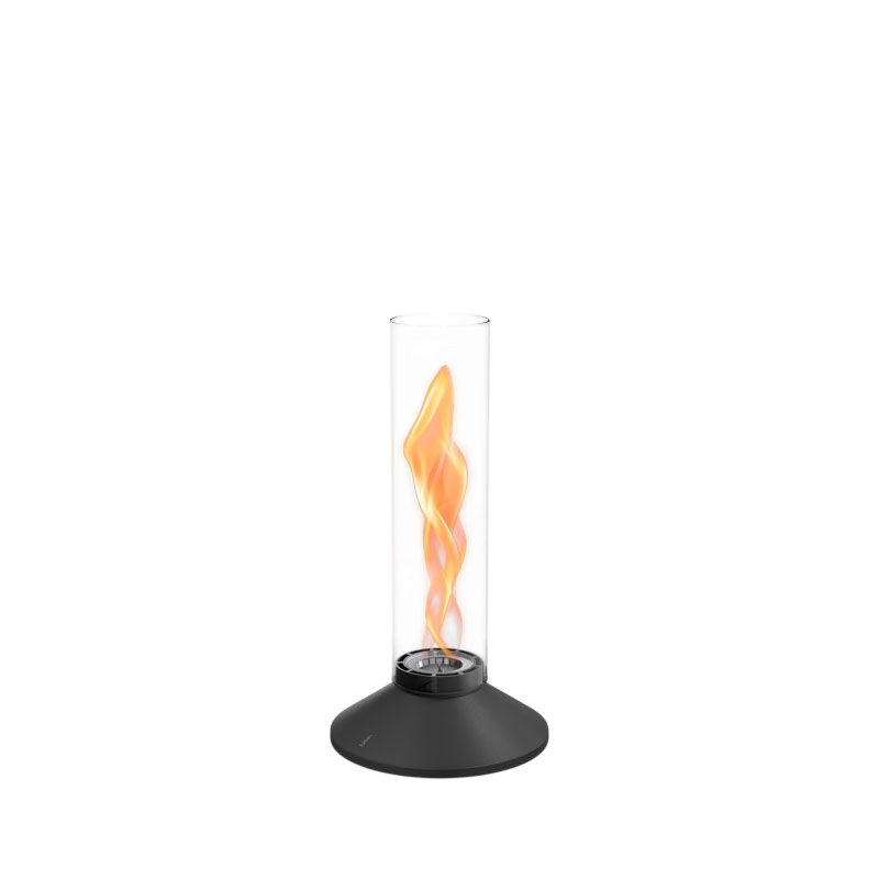 Betrieben mit natürlichem höfats Bioethanol verwandelt sich SPIN X beim Aufsetzen des Glaszylinders aus hitzebeständigem Borosilikatglas in ein spektakuläres Flammenspiel. Die Flamme erhebt sich spiralförmig wie eine lebendige Skulptur aus Licht und Wärme – sauber, geruchlos und rauchfrei.