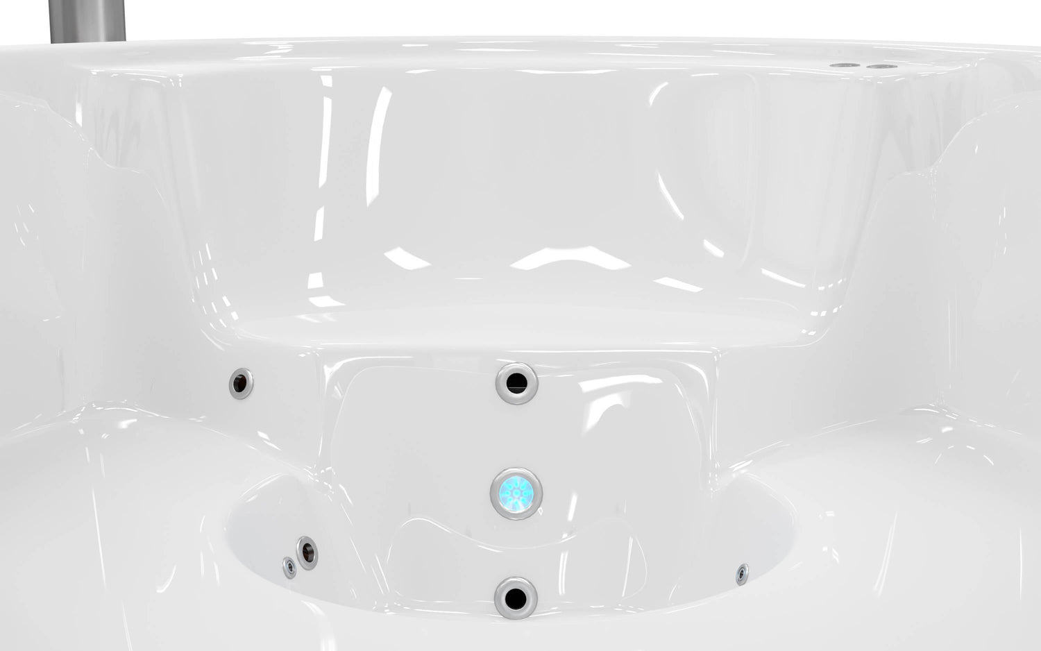 Das ergonomische Badefass aus Glasfaser bietet volle Bewegungsfreiheit und zusätzlichen Platz für mehrere Personen.