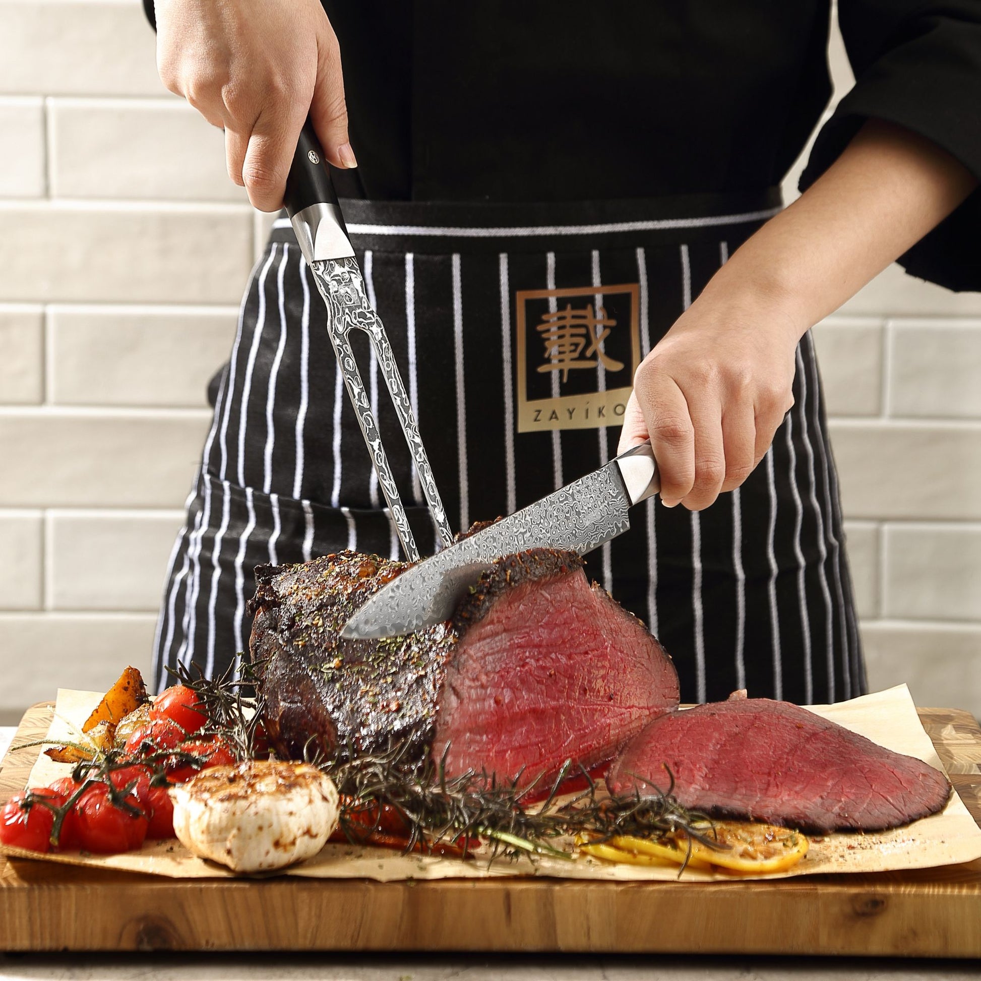 Zayiko Damast Tranchiergabel | Zinkenlänge 14,00 cm | Serie Black Edition