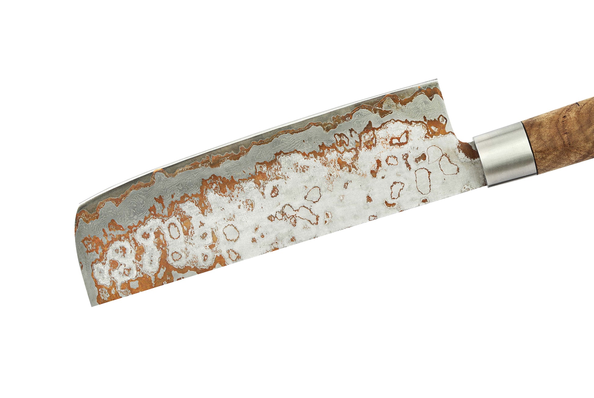 Die mehrfach gewickelten Stahllagen machen jedes Messer zu einem einzigartigen Kunstwerk. Der Griff aus edlem Ahornwurzelholz vereint zeitlose Eleganz mit ergonomischem Design und liegt perfekt in der Hand. Die Kombination von traditioneller Handarbeit und moderner asiatischer Schmiedekunst führt zu einem extrem harten und langlebigen Produkt, das länger scharf bleibt und sich im täglichen Einsatz bewährt.