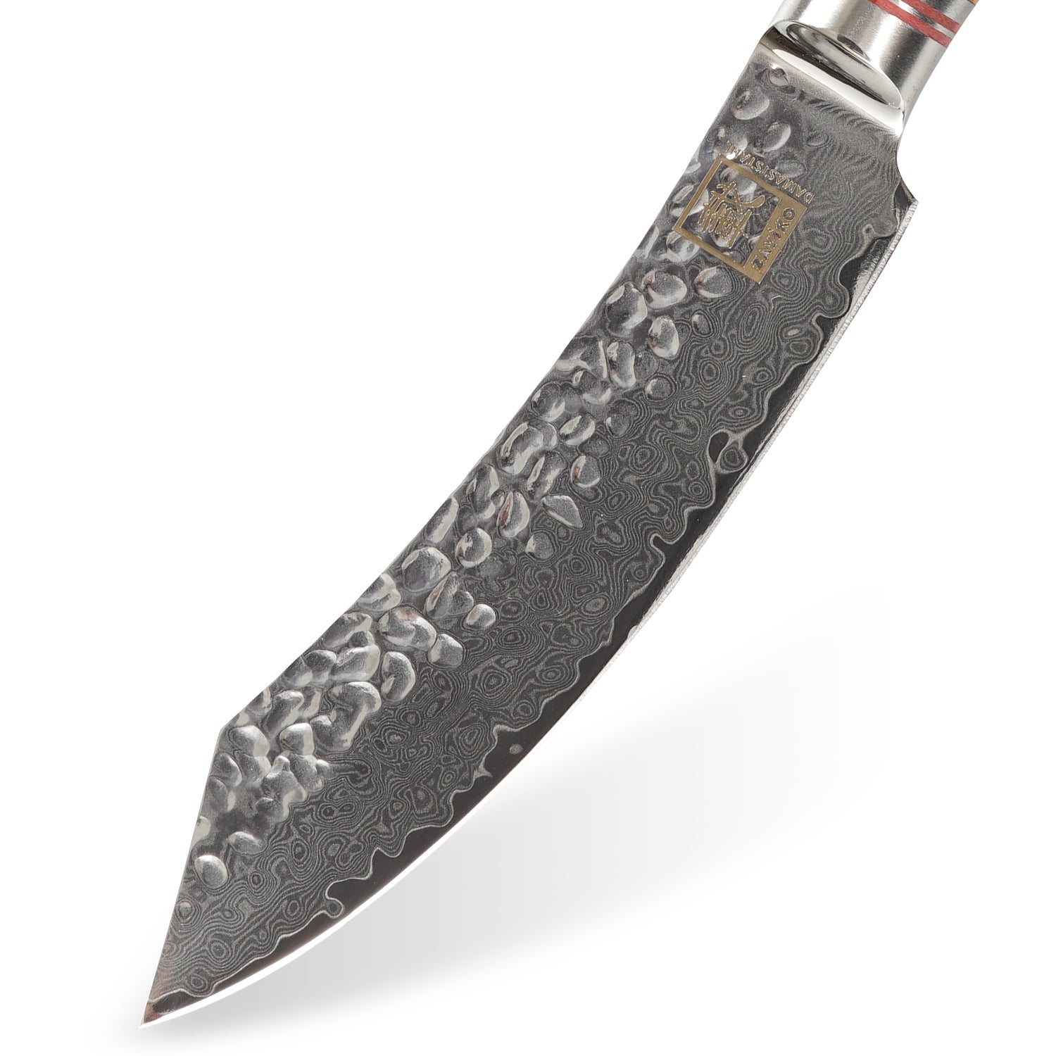 Die Klingen, mit 12 cm Länge und Hammerschlag, wird aus 67 Stahllagen original japanischem Damaszenerstahl mit VG-10 Stahlkern und einem Härtegrad von 60±2HRC gefertigt. Diese Stahllagen wurden mehrfach gewickelt, wodurch die Struktur aus unterschiedlichen Lagen jedes Steakmesser der Zayiko Oliven-Serie zu einem echten Unikat macht. Diese Messer sehen nicht nur einzigartig aus, sie sind auch rasiermesserscharf! Das Steakmesser-Set wird mit einer hochwertigen Holzverpackung geliefert.