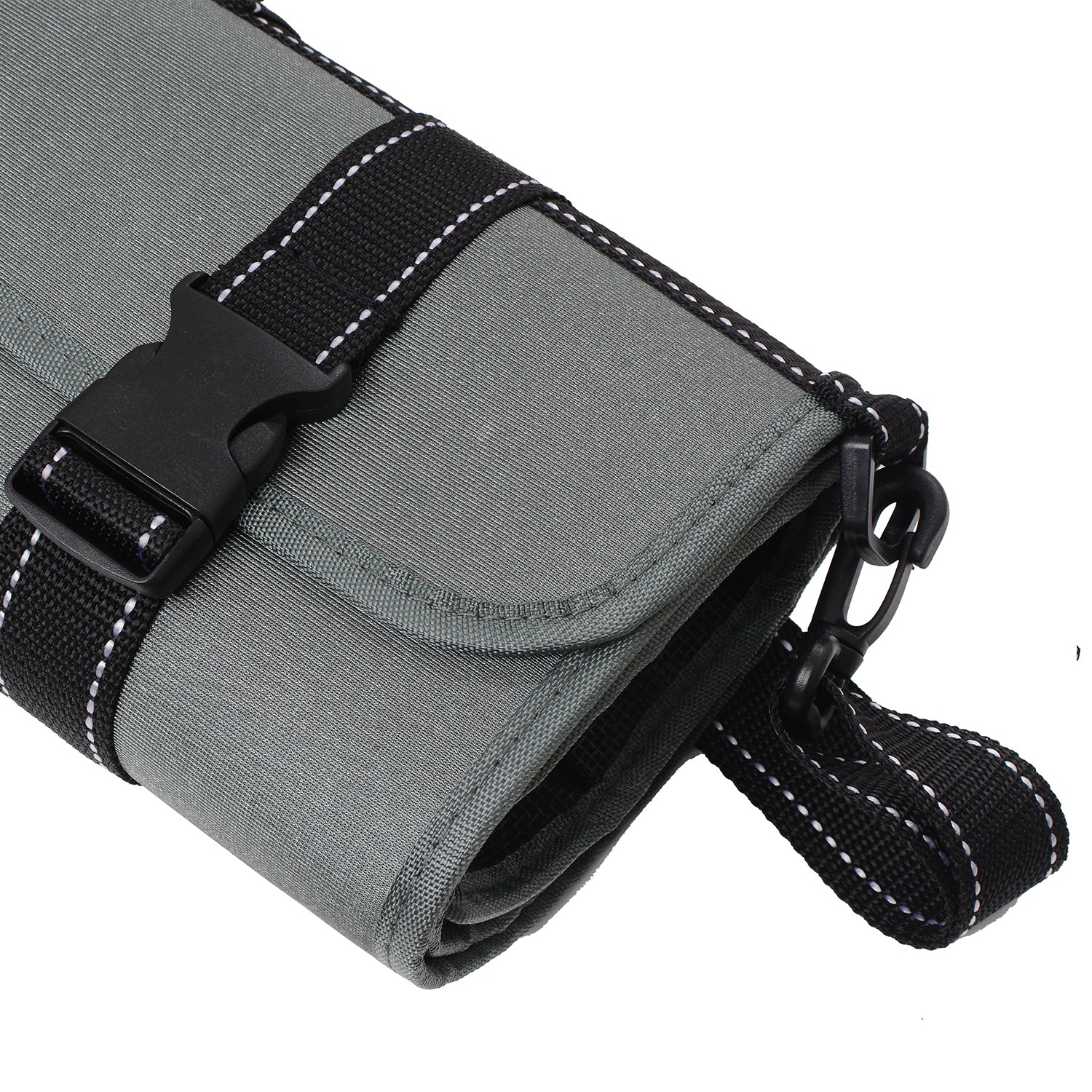 Das zeitlose Design der Rolltasche wird durch den klassischen Farbton unterstützt. Im Inneren befinden sich einzelne Fächer, die durch zwei separat aufknöpfbare Bereiche voneinander getrennt sind. Dadurch wird verhindert, dass Sie versehentlich in die Klingen greifen können.