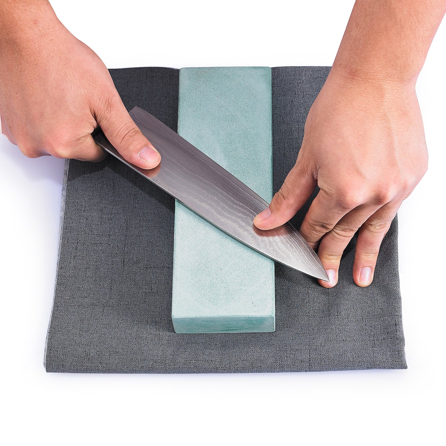 3. Halten Sie stets einen flachen Winkel von 15°, um ein gleichmäßiges Ergebnis zu erzielen. Achten Sie darauf, dass der Stein stets feucht gehalten wird.